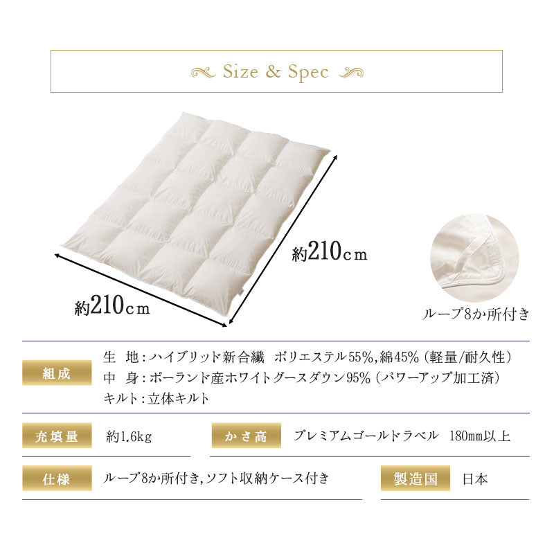 | 品名 | 日本製 プレミアムゴールドラベル 羽毛布団 |