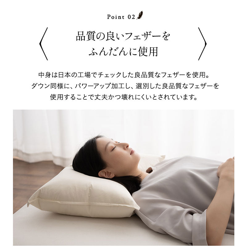 通常タイプより約1300gのフェザーを使用し、高め・硬めでしっかりとした寝心地が特長です。