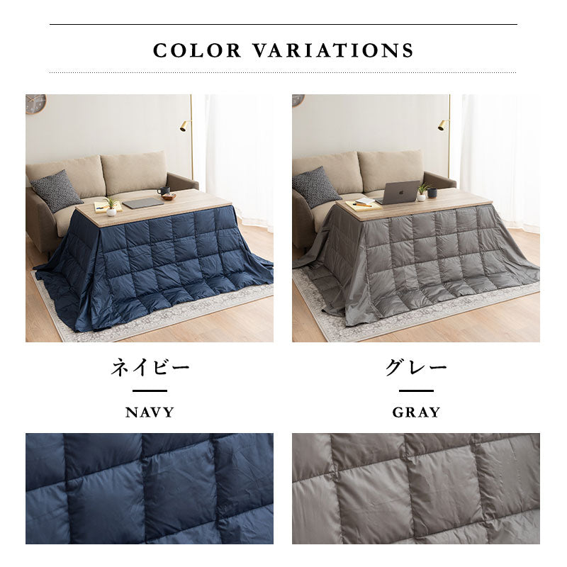 羽毛を使用することで、内部に空気を溜めこみ、こたつの熱を逃がしにくい高保温設計です。