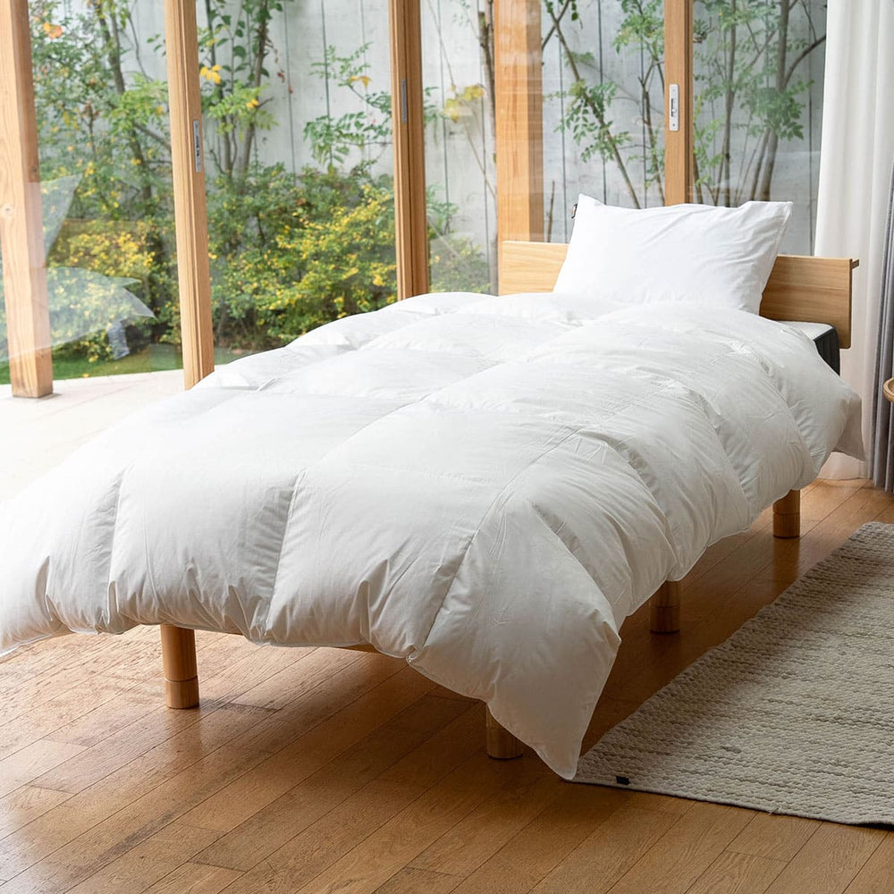 ダウン率70%で、現代の高気密住宅やエアコン併用環境でも通年快適に使用できます。