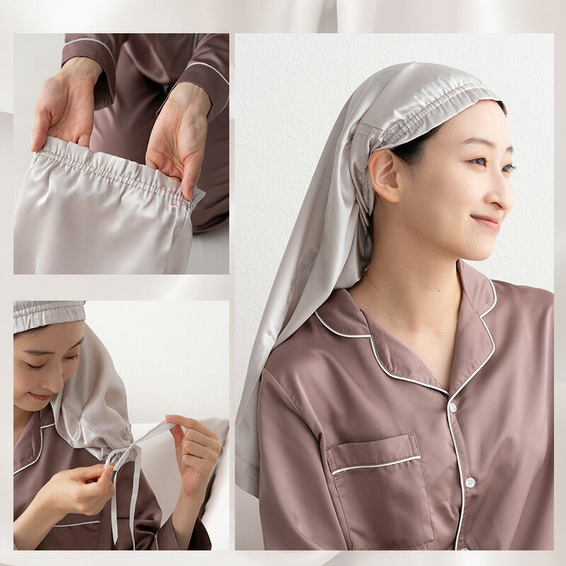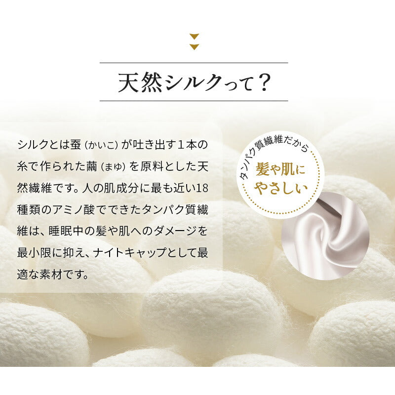 最高級6Aランク天然シルク100%を使用し、睡眠中の髪や頭皮を守る美髪ケアナイトキャップです。