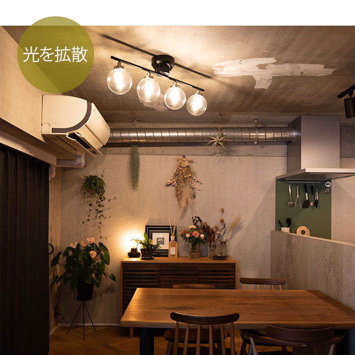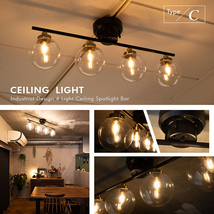 高級感あるブラックフレームとクリアガラスが美しい、インダストリアルデザインのシーリングライトです。