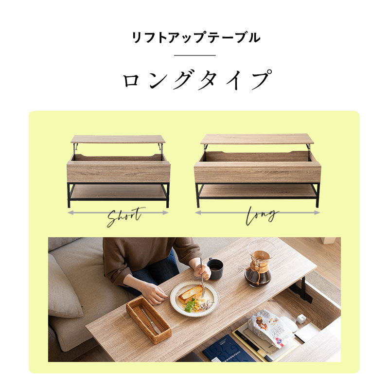 サイズ | <ロングタイプ> 全体:約幅113×奥行53×高さ45-58.5cm リフトアップ天板:約幅113×奥行40cm 収納部:約幅110×49.5cm |