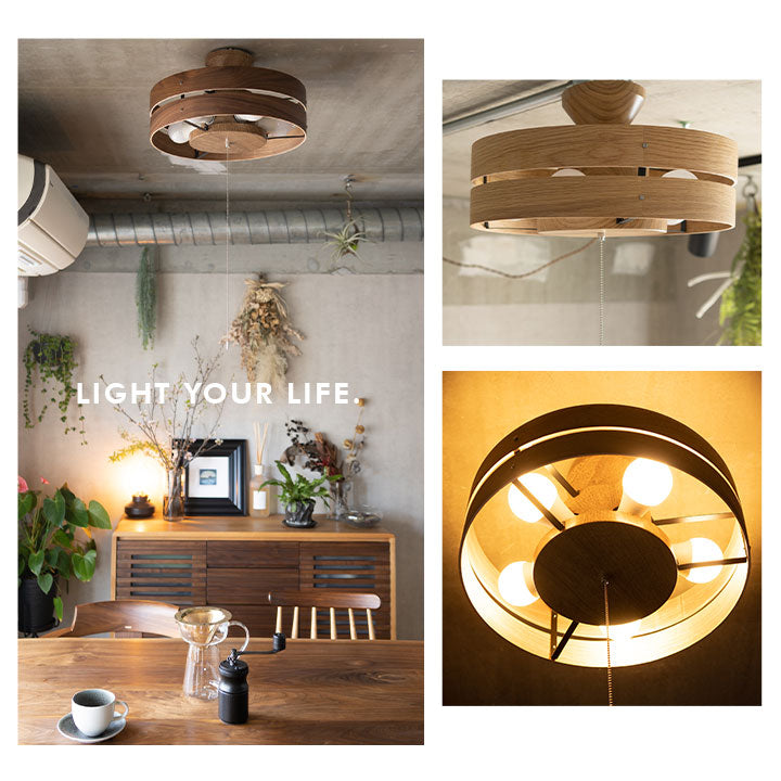 プルスイッチと壁スイッチで調光が可能、シーンに合わせて光量を調節できます。