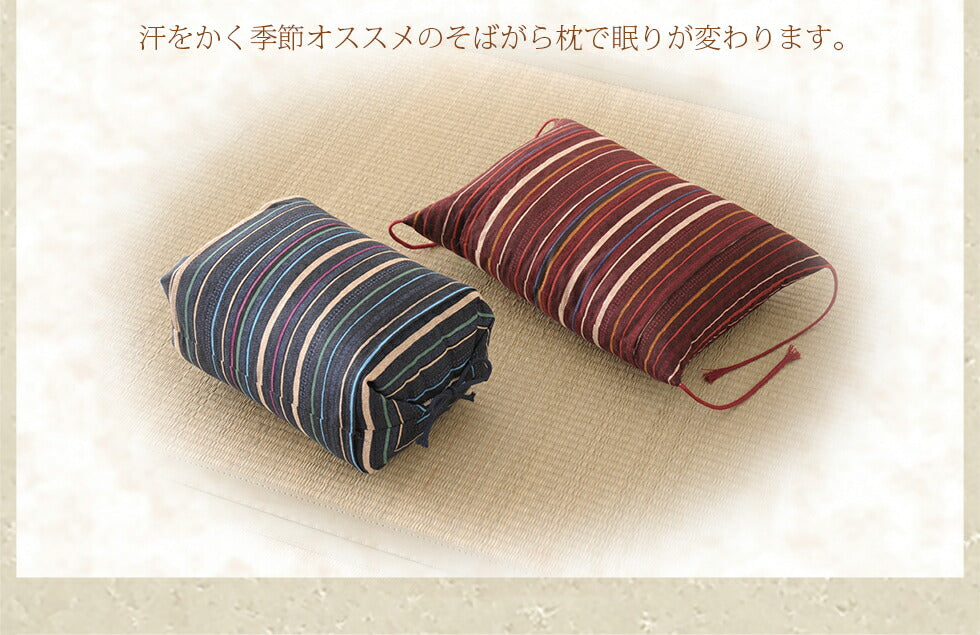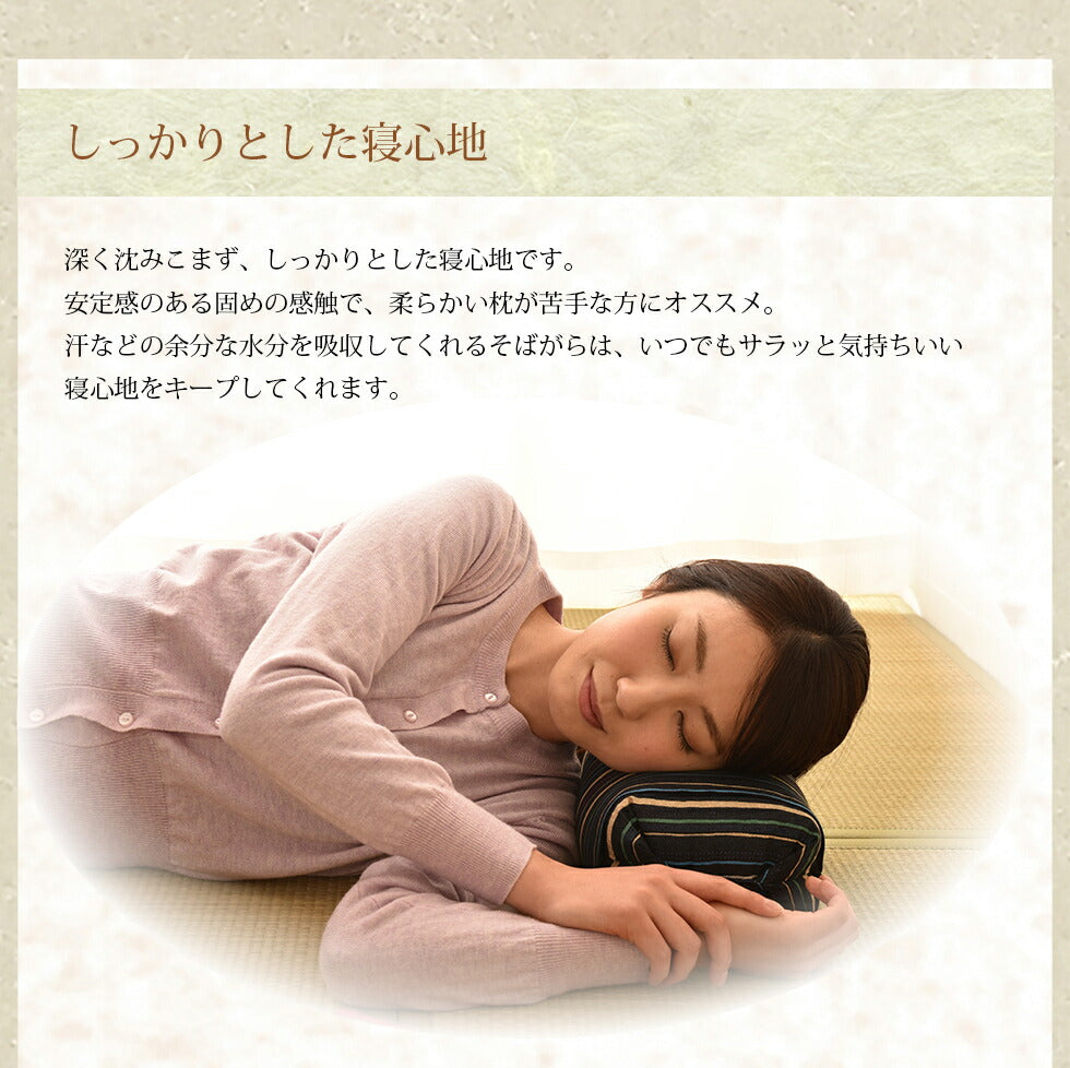 通気性と吸湿性に優れたそばがらを使用し、寝汗や湿気対策に適した日本製枕です。