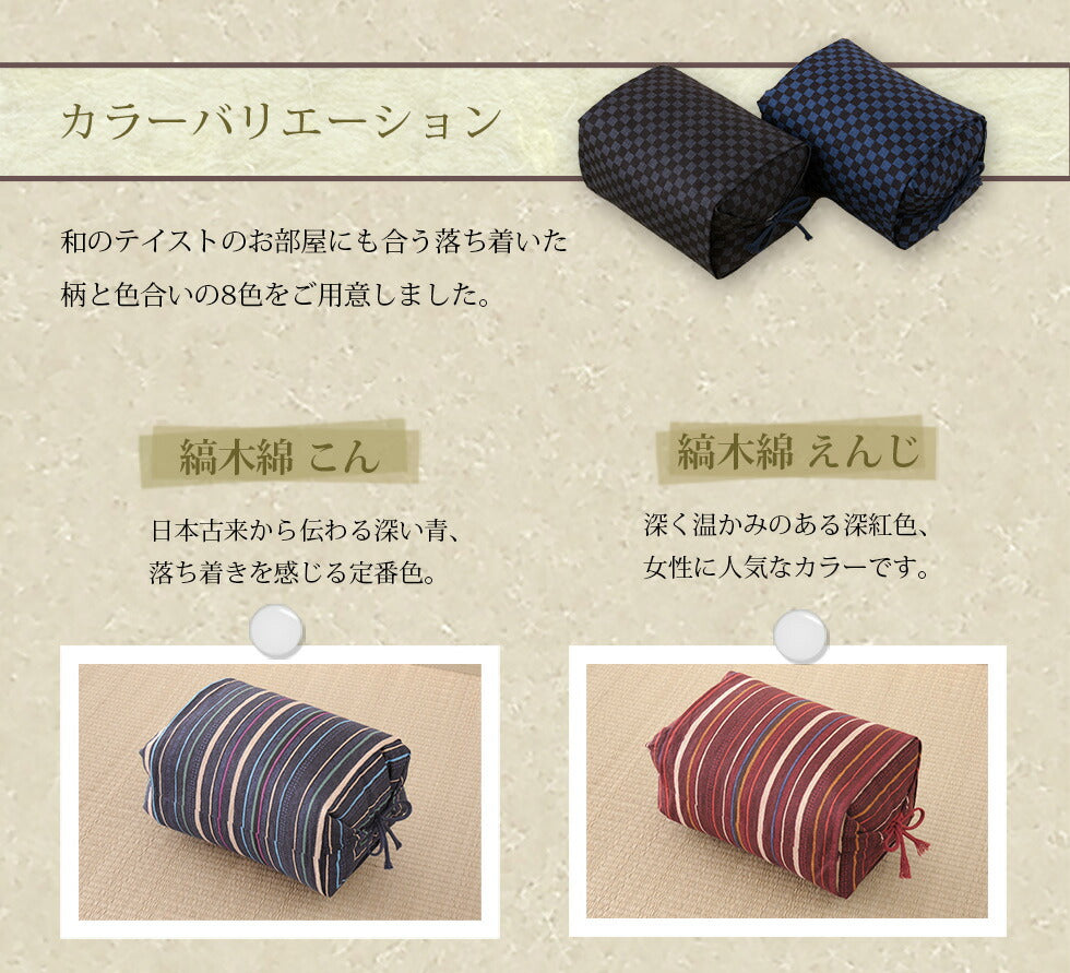 素材 | 表地:綿100% 詰め物:天然そばがら(燻蒸処理済) |
