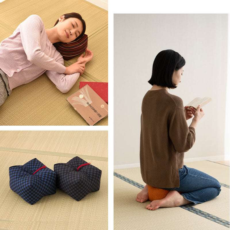 体重をしっかりと支え、正座での足のしびれや痛みを軽減し、枕やお昼寝用としても活躍します。