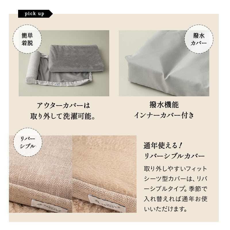 着脱が簡単なフィットシーツ型カバーは、家庭用洗濯機で手軽に洗えて衛生的です。