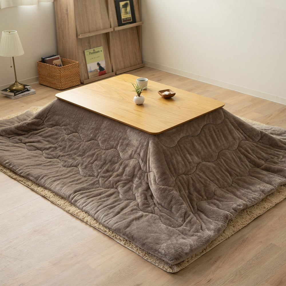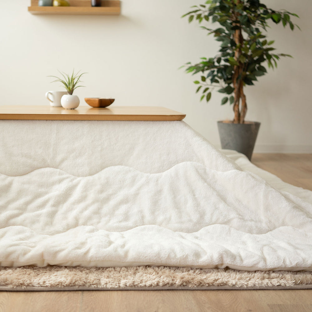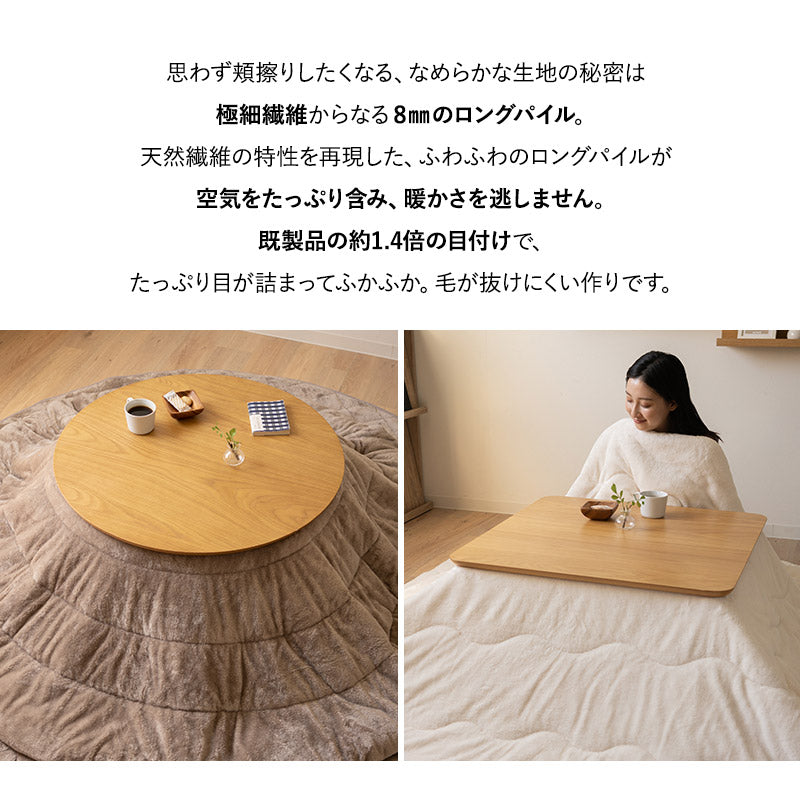 毛が抜けにくくホコリも少ない仕様で、こたつ布団をまるごと手洗いできるので手入れも簡単です。