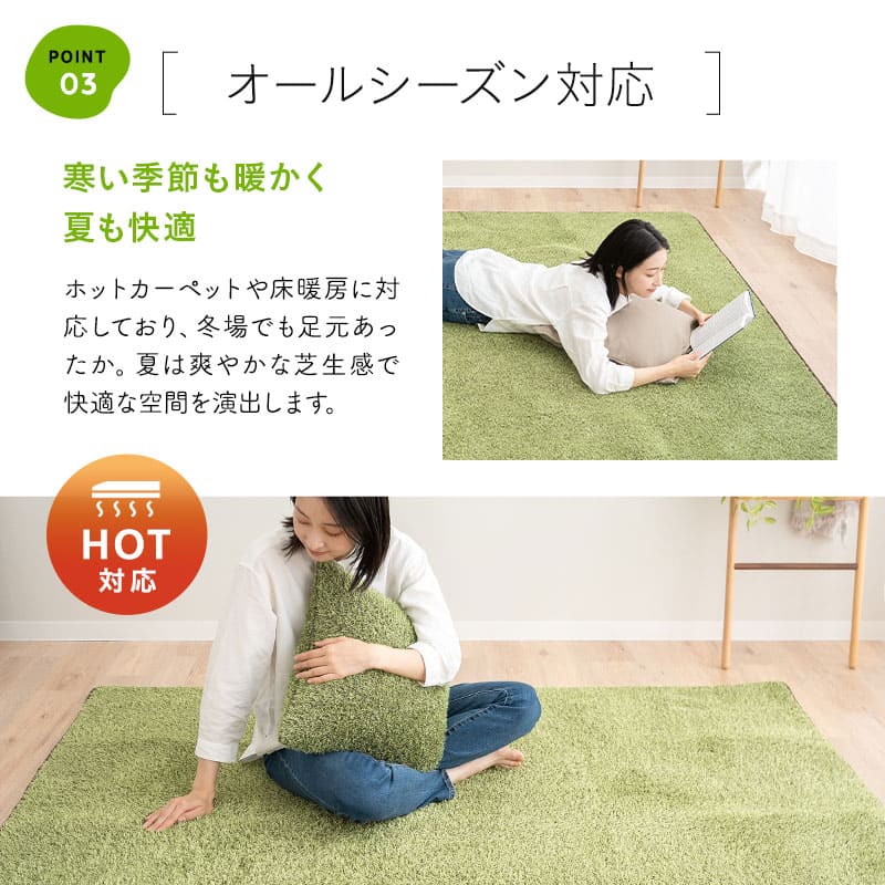 ホットカーペットや床暖房にも対応し、季節を問わず一年中快適にご使用いただけます。