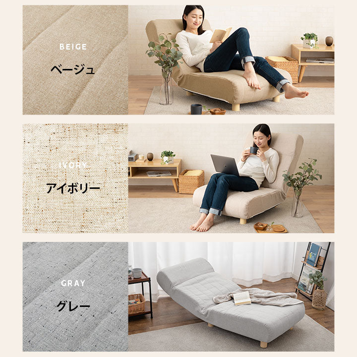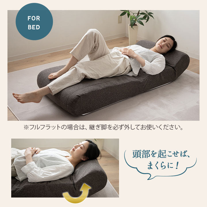 継ぎ足の着脱やリクライニング調整により、ローソファや簡易ベッドにマルチに活用できます。