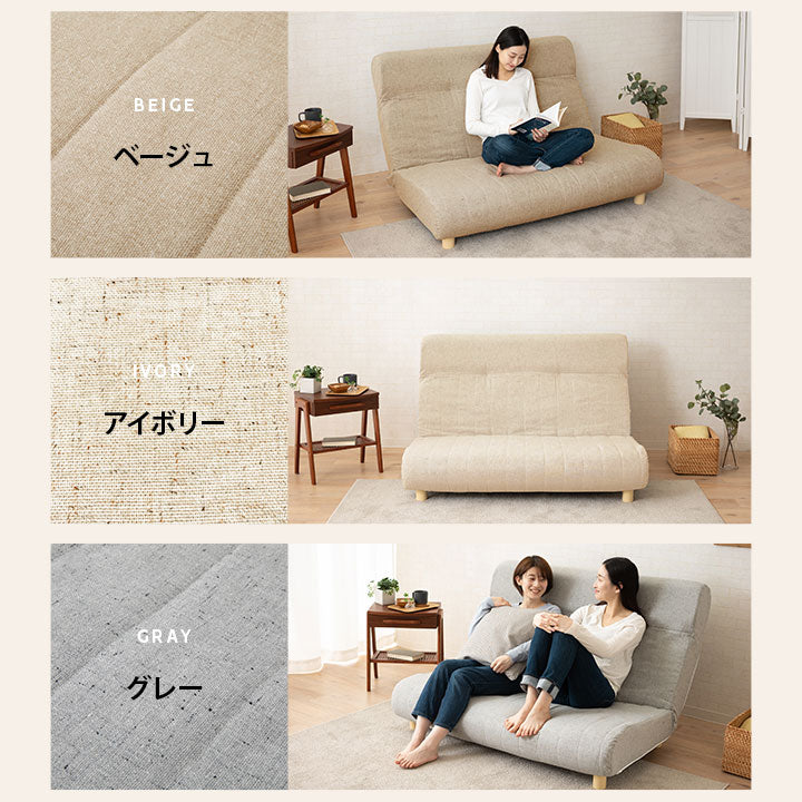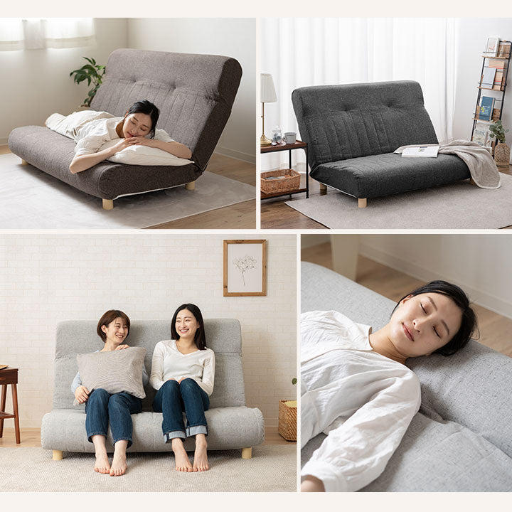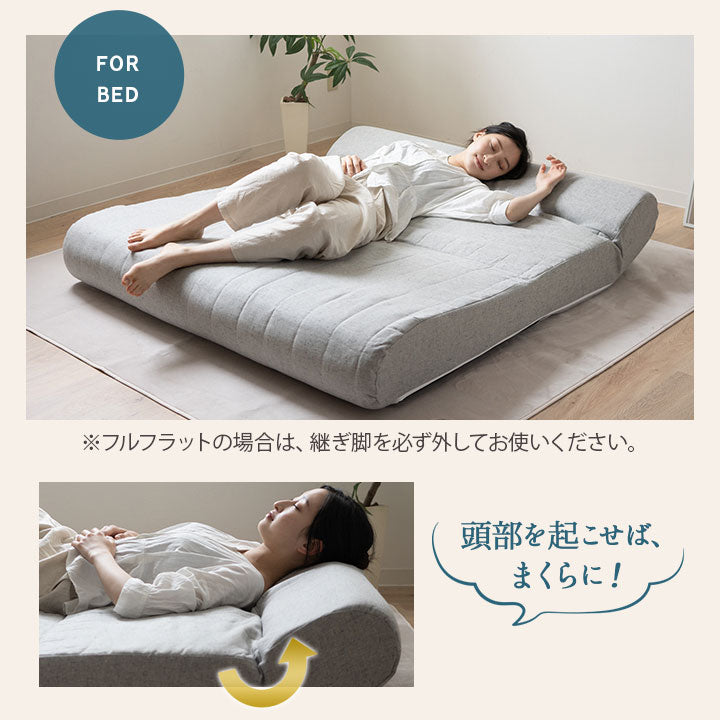 リクライニング機能や継ぎ足の着脱で、ソファから簡易ベッドなど多用途に使えます。