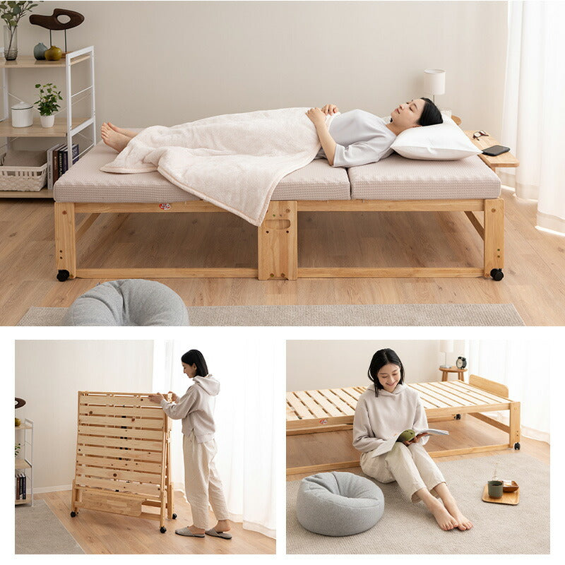 片手で簡単に折りたためる設計で、安全かつ手軽に扱えるベッドです。お子様やご高齢の方にも安心してお使いいただけます。
