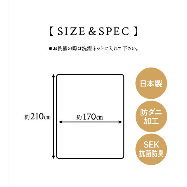サイズ | セミダブルサイズ:約170×210cm ※こちらのサイズは生地幅より大きい幅になるため、生地のつなぎが入ります。ご理解・ご了承ください。 |