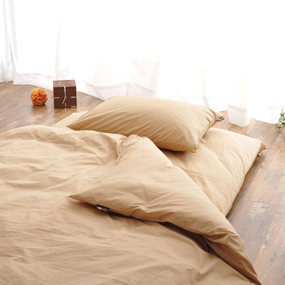 高密度200本の上質なブロード生地で、100%天然綿を使用。やわらかな肌触りが寝具の印象を高めます。