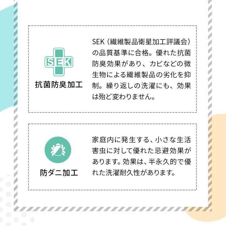 機能 | SEK抗菌防臭加工・防ダニ加工 |