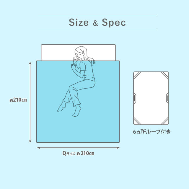 サイズ | クイーンサイズ:約210×210cm、6ヶ所ループ付き |