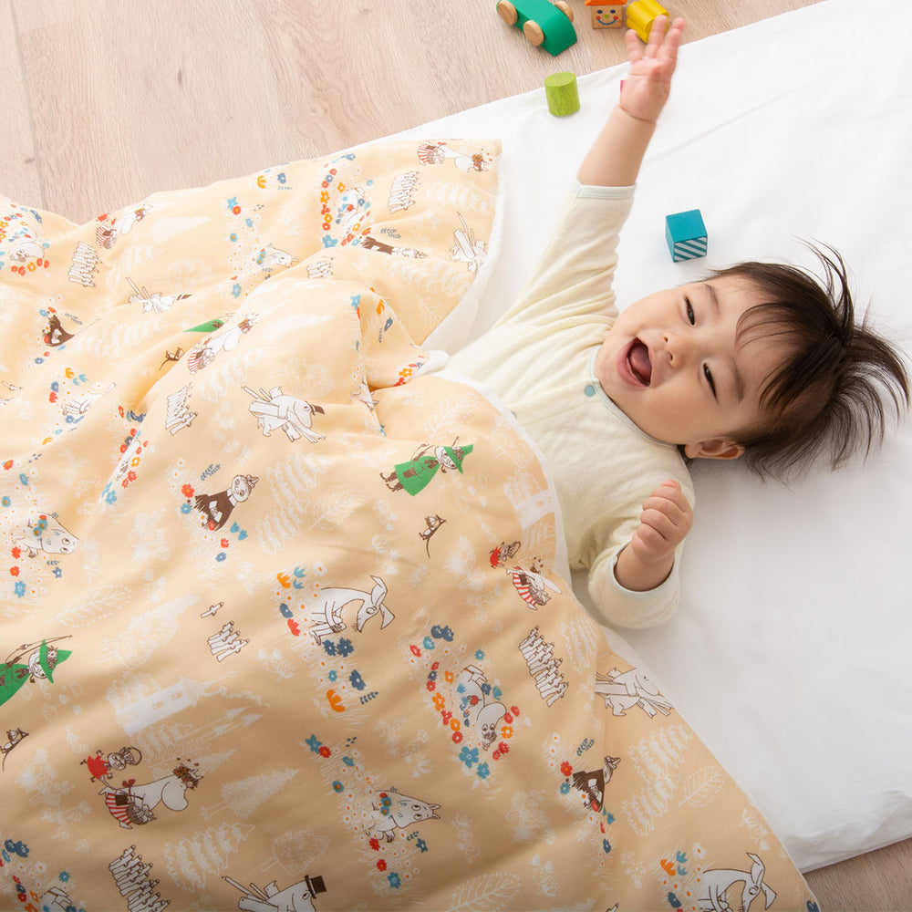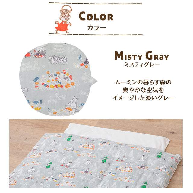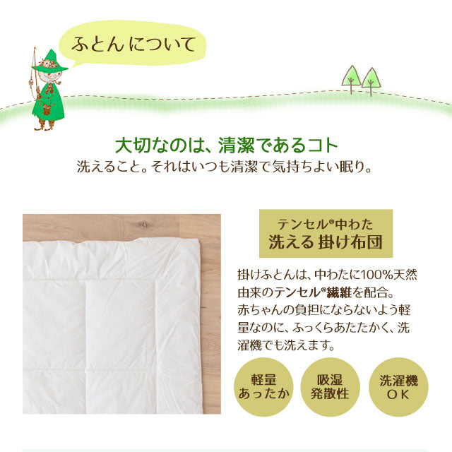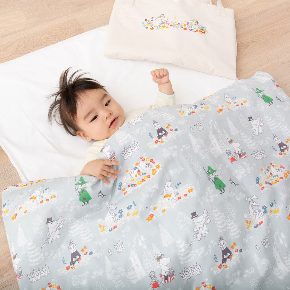 ムーミンと仲間たちの北欧テイスト柄で、お子様のお昼寝を楽しく彩る布団セットです。