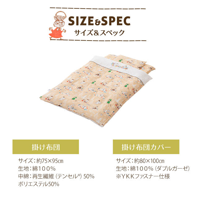 掛け布団 | 約75×95cm 生地;綿100% 中綿:再生繊維(テンセル(R))50% ポリエステル50% | ||