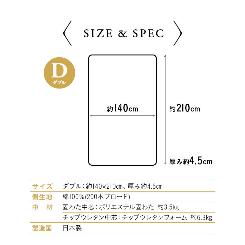 サイズ | ダブルサイズ:約幅140×奥行210×厚さ4.5cm |