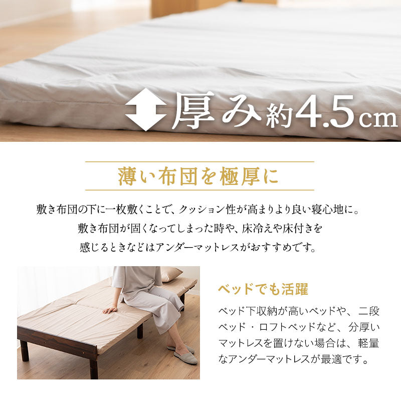敷き布団の下に敷くだけでクッション性が高まり、寝心地が大幅に向上します。床からの高さも確保でき、床冷えや床付きも防止します。