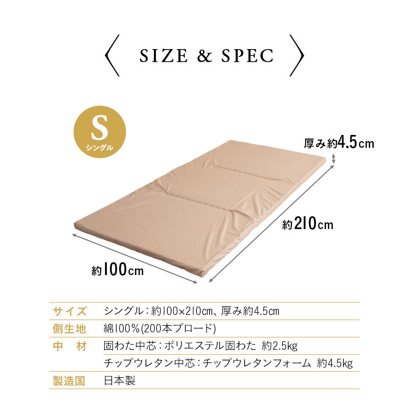 サイズ | シングルサイズ:約幅100×奥行210×厚さ4.5cm |