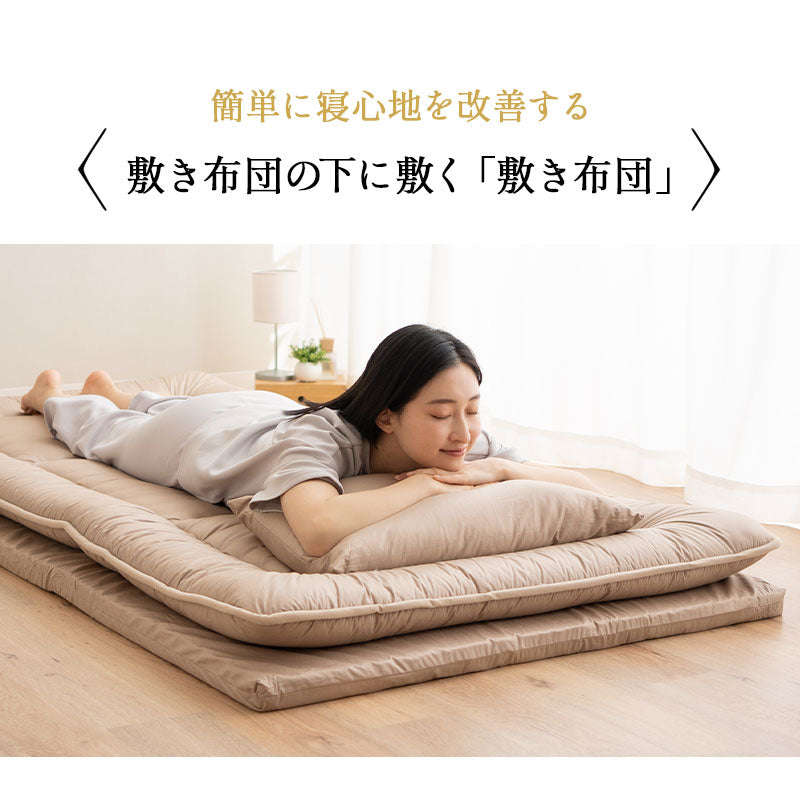 敷き布団の下に敷くアンダーマットレスでクッション性が向上し、快適な寝心地が得られます。