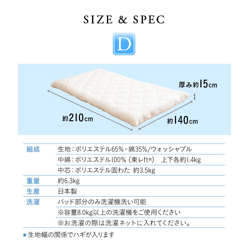 サイズ | ダブルサイズ:約140×210×15cm |