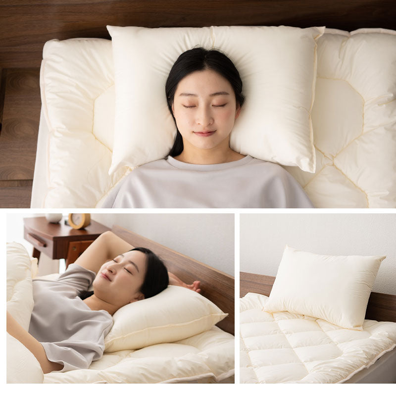 ふっくらとした弾力が首元までしっかり支え、優しい肌触りで快眠をサポートします。