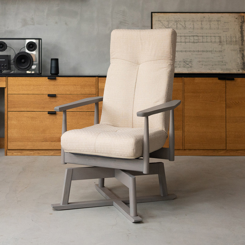 実用的なジャパンディデザインと機能性。安全ストッパー付き回転高座椅子「みなも」