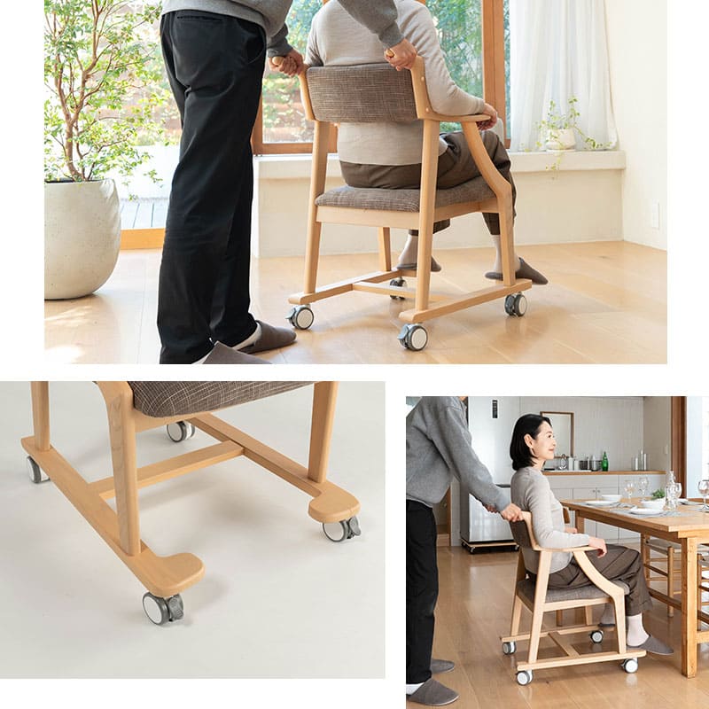 食事のしやすさと食後の軽い休息を両立する設計はそのままに、移動・介助のしやすさを高めたサポートモデルです。
