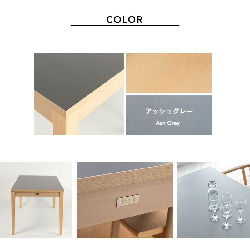 | 組成 | 天板:合成樹脂化粧板(メラミン樹脂) 脚部:天然木(ニレ無垢材) ウレタン樹脂塗装 |