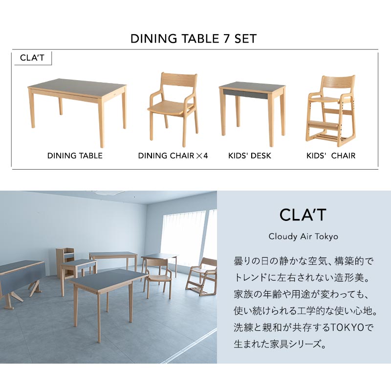 | 品名 | 【CLA'T】 ダイニングテーブル 7点セット (ダイニングテーブル+椅子4脚+キッズデスク&チェア) |