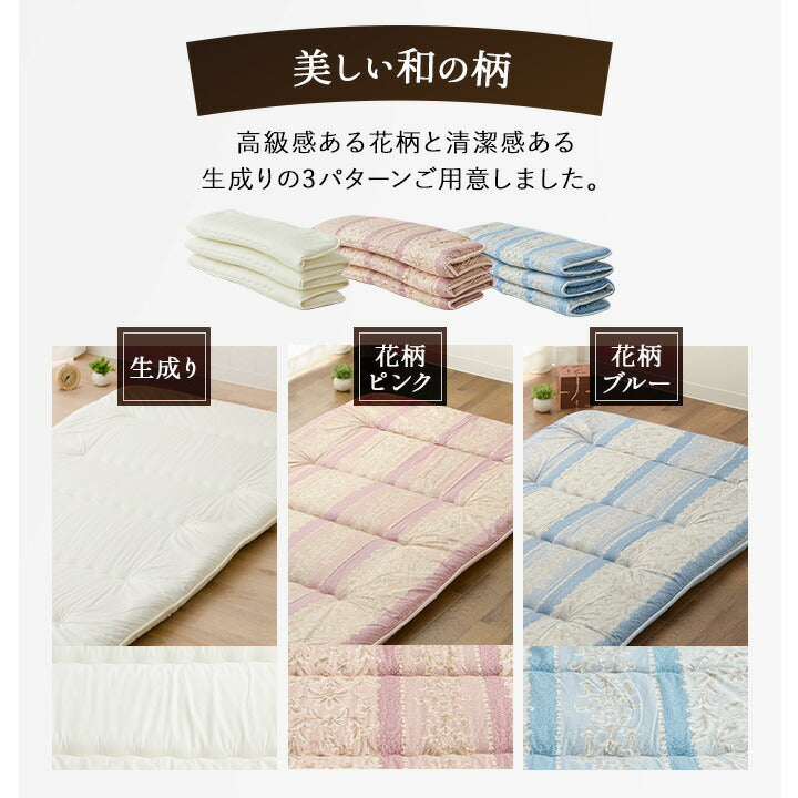 高密度固わたを高機能わたで挟んだサンドイッチ製法で、身体をしっかり支えつつクッション性も抜群です。