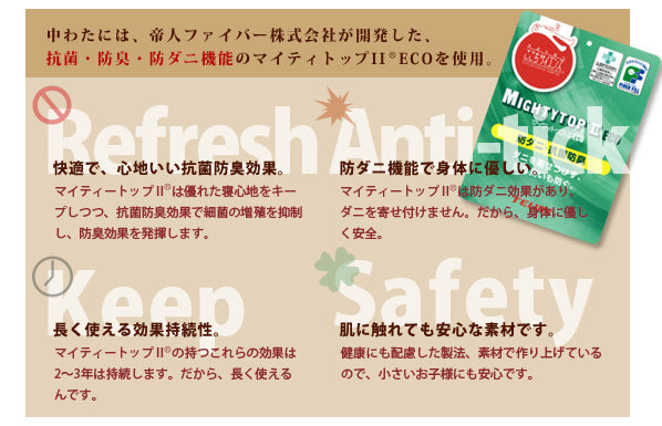 抗菌・防臭・防ダニ機能を持つ高品質中わた「マイティトップ®ⅡECO」を使用しています。