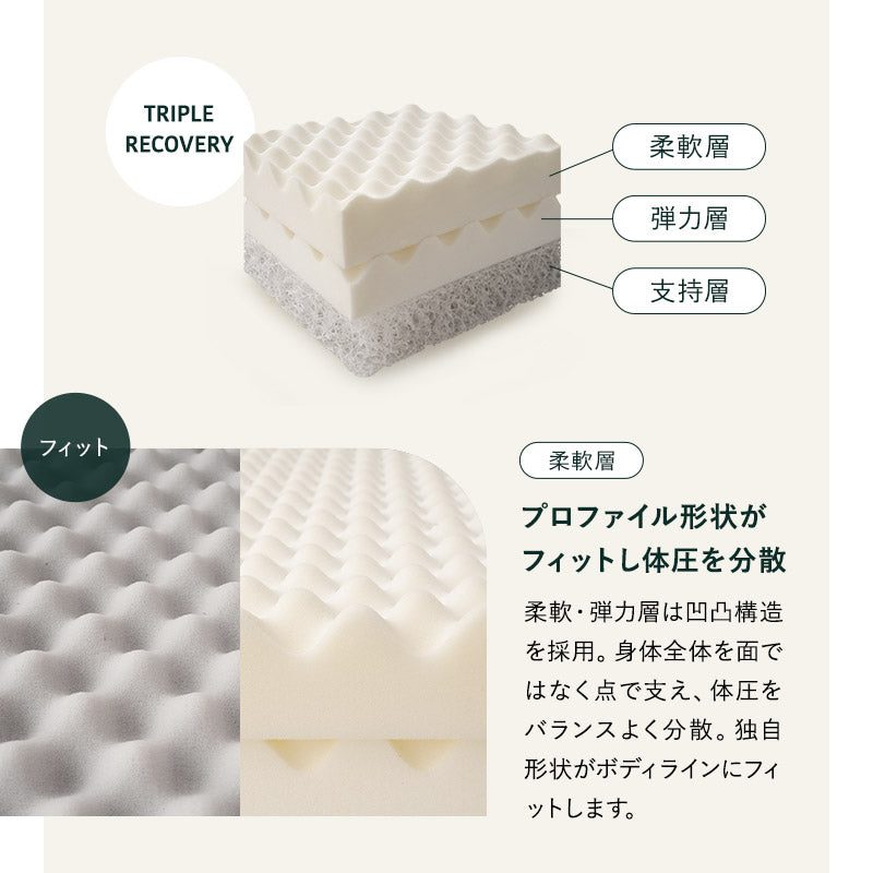 高弾性・高反発ウレタンと3D構造体で心地良い寝心地と安定感を実現しています。
