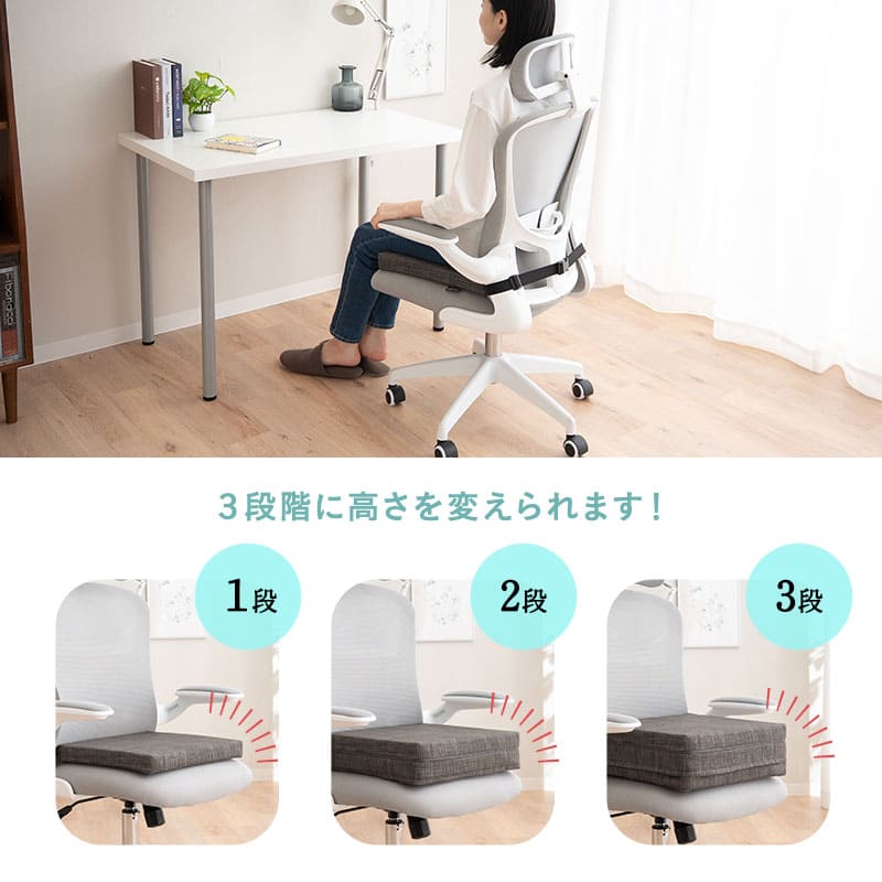 高さ調整可能なキッズクッションで、お子さまの成長に合わせて使い続けられます。