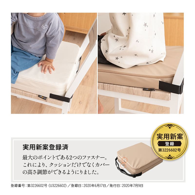 「リュッケ」は成長に合わせて高さ調節ができ、長期間使用できるキッズ用クッションです。