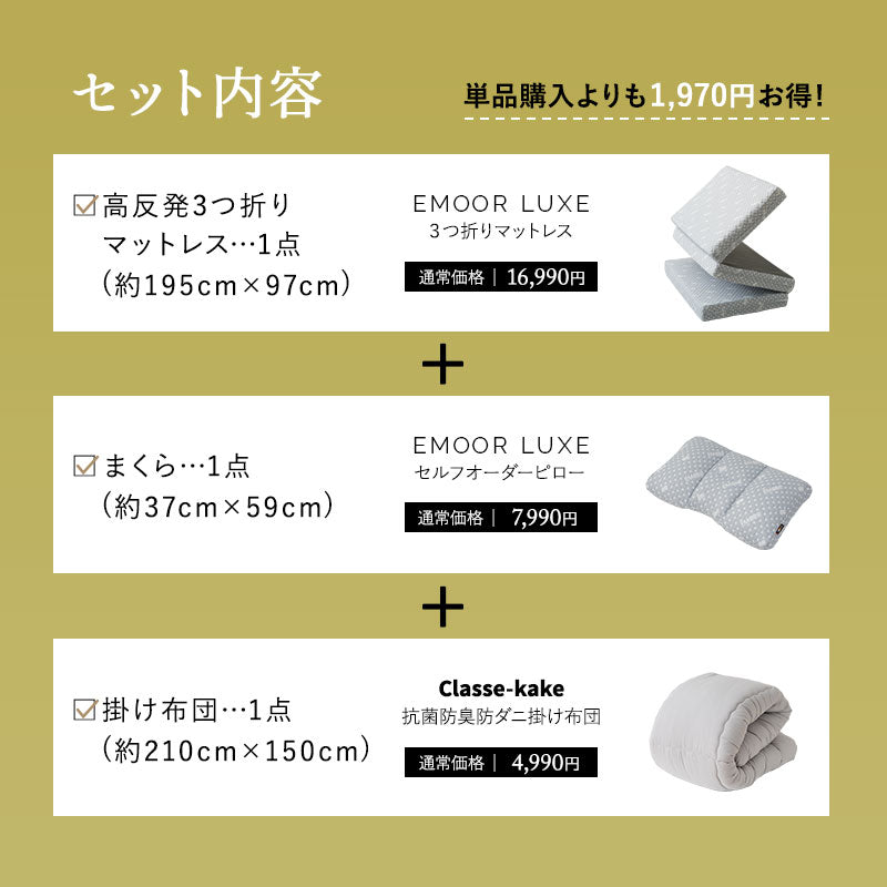 品名 | 【EMOOR LUXE】 高機能マットレス 布団3点セット |