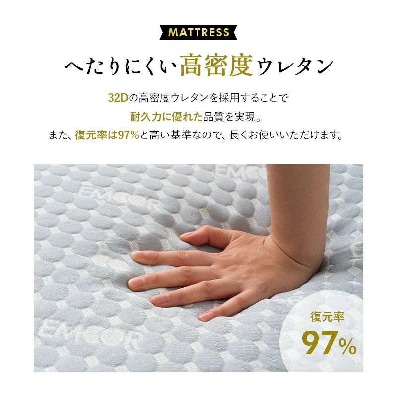 高密度32Dウレタンを採用し、復元率97%で長期間へたりにくい耐久性を持っています。