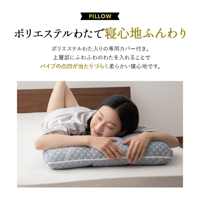 枕は高さ調整可能な3層構造で、枕・カバーとも洗えて清潔に使える点も特長です。