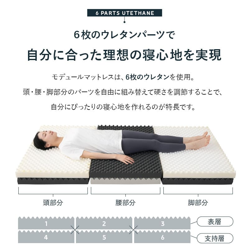 仕様 | L字ファスナー開閉式 好みの寝心地にウレタンパーツの組み換え可能 |