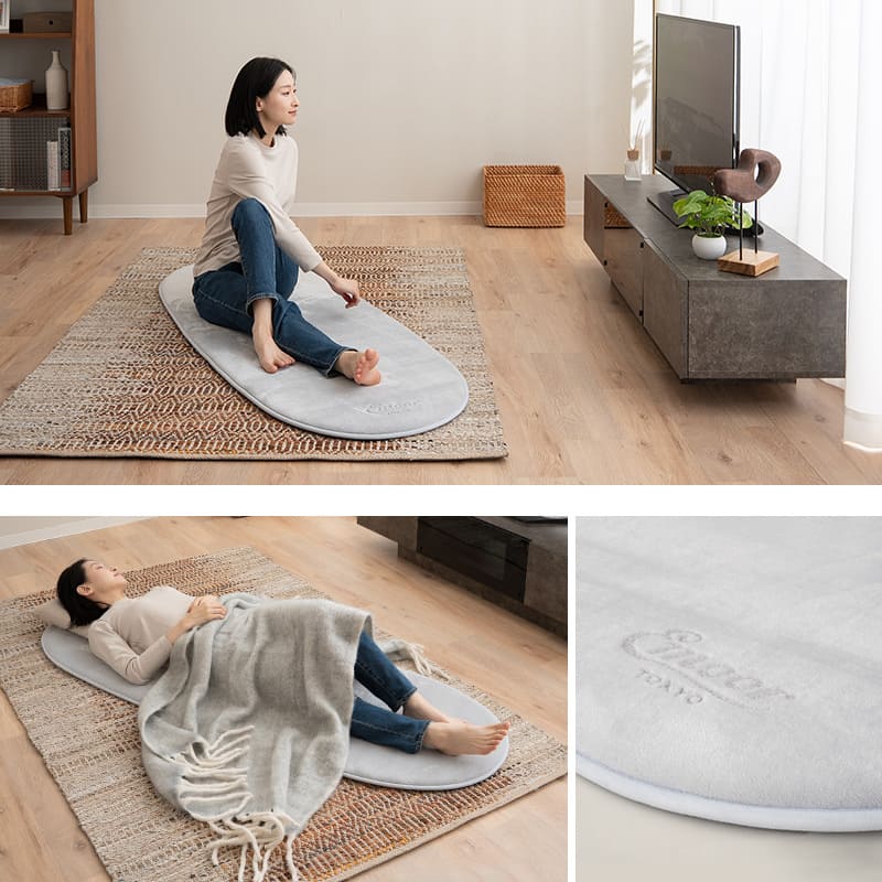 コンパクトに収納できるオーバル型ごろ寝マット