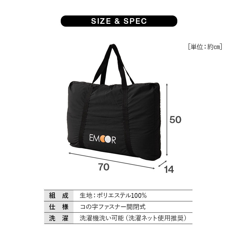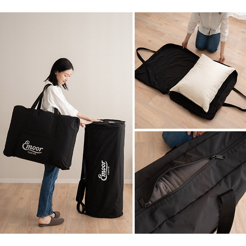 約50×70cmまでの枕が収納可能な専用バッグで、自宅の寝心地をどこでも再現できます。