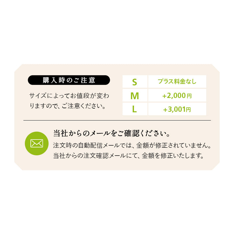 適正犬種 | ■Sサイズ目安:最大面積約52×40cm(マット部約38×24cm) チワワ、ヨークシャーテリア、ポメラニアン、パピヨン、 マルチーズ、トイプードル、ミニチュアダックスフンド、 シーズー、ミニチュアシュナウザー、フレンチブルドッグ、 パグ、ノーフォークテリア、ノーリッチテリア、 ウェストハイランドホワイトテリア、子犬・子猫等、猫等 ■Mサイズ目安:最大面積約65×46cm(マット部約49×28cm) チワワ、ヨークシャーテリア、ポメラニアン、パピヨン、 マルチーズ、トイプードル、ミニチュアダックスフンド、 シーズー、ミニチュアシュナウザー、フレンチブルドッグ、 パグ、ノーフォークテリア、ノーリッチテリア、 ウェストハイランドホワイトテリア、猫等、柴犬、 ビーグル、ウェルシュコーギーペンブローク、 ケアーンテリア、ボストンテリア、ジャックラッセルテリア、 シェットランドシープドッグ、イタリアングレーハウンド、 アメリカンコッカースパニエル、小型犬の多頭飼い等 ■Lサイズ目安:最大面積約85×60cm(マット部約65×40cm) 柴犬、ビーグル、ウェルシュコーギーペンブローク、 ケアーンテリア、ボストンテリア、ジャックラッセルテリア、 シェットランドシープドッグ、イタリアングレーハウンド、 アメリカンコッカースパニエル、ゴールデンレトリーバー、 ラブラドールリトリーバー、フラットコーテッドレトリーバー、 スタンダードプードル、ダルメシアン、シベリアンハスキー、 エアデールテリア、チャウチャウ、ビアデッドコリー、 ボーダーコリー、小型犬の多頭飼い等 ※標準的な体格で丸まった寝姿勢時のサイズとベッドの最大面積(枕部を含む)を比較した目安です。愛犬愛猫の体格が大きめの場合や寝姿勢によって、1サイズアップをご検討ください。マット部に愛犬愛猫が収まるようにされたい場合も、1サイズアップをご検討ください。 |