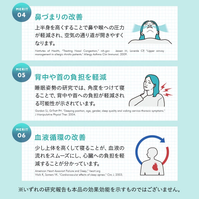 快適な傾斜角度と高品質素材で、逆流性食道炎や寝返りが困難な方の寝姿勢を自然にサポートする設計です。
