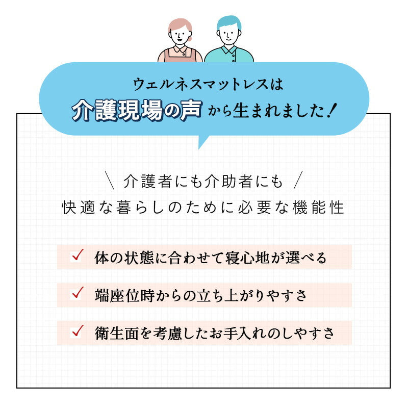 | 仕様 | 電動ベッド対応 ■防水カバー 完全防水仕様、コの字ファスナー開閉式、ファスナー隠し付き ■中材 天地入れ替えで両面使用可能 |