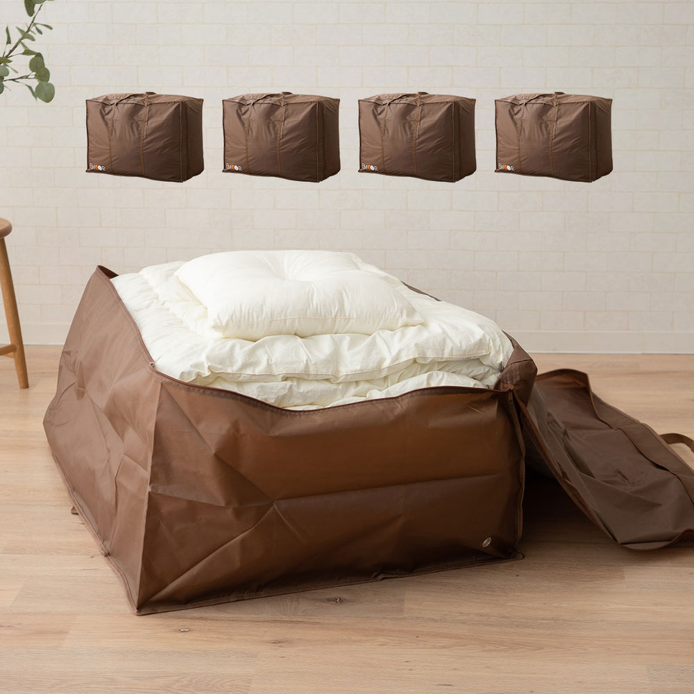 掛け布団・敷き布団・枕をまとめて収納できる大型収納ケースの4点セットです。