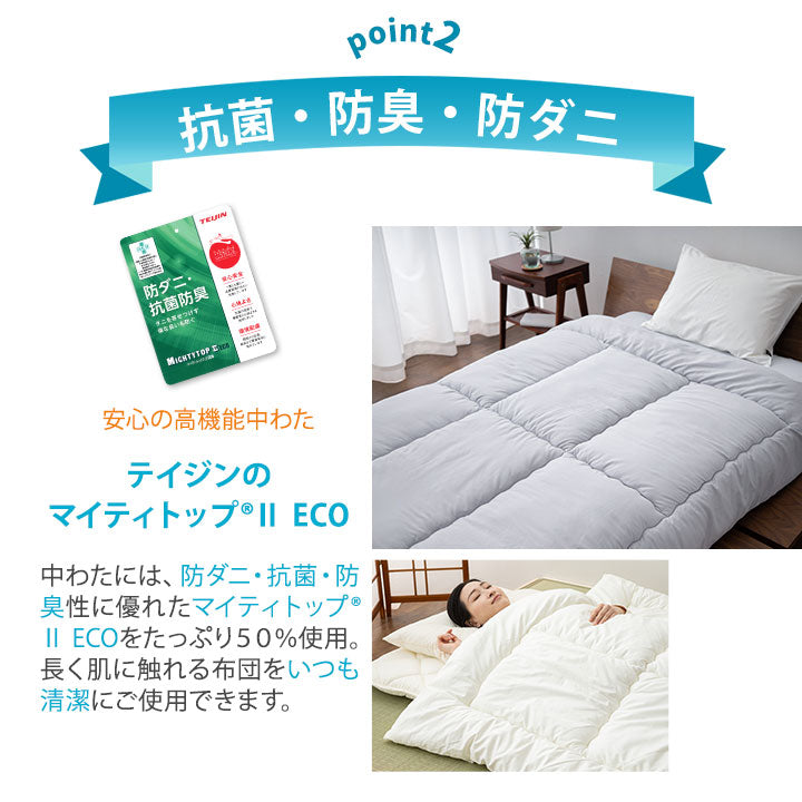 中わたは抗菌・防臭・防ダニ性に優れたマイティトップ®ⅡECOを使用し、清潔に保てます。