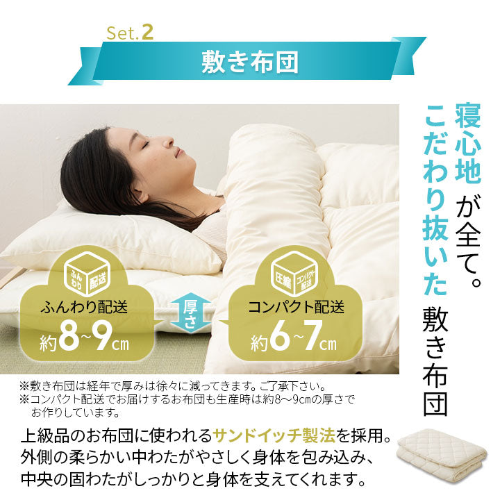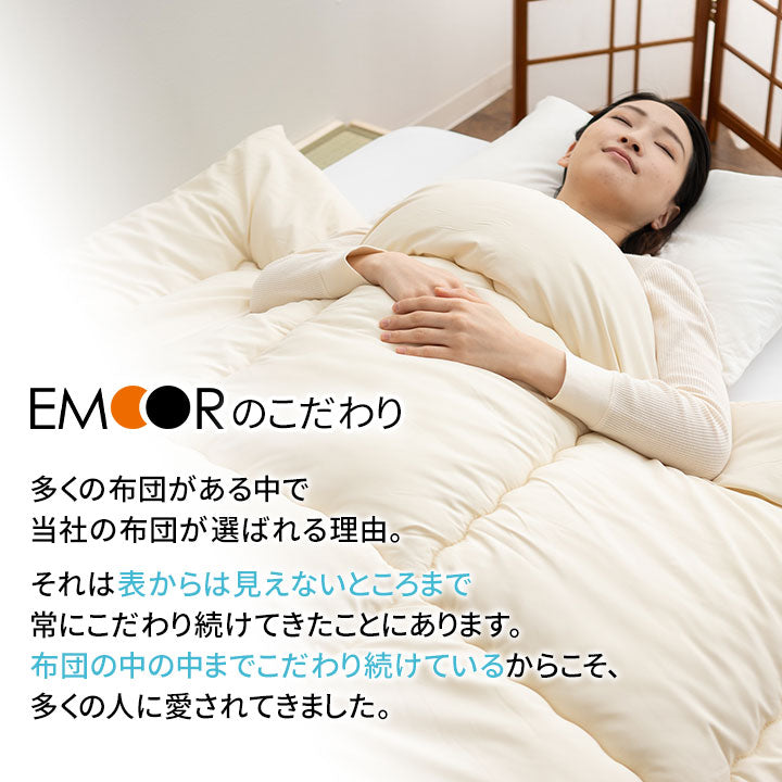 敷き布団は三層構造、掛け布団はボリューミーで暖かさとやわらかさも魅力です。